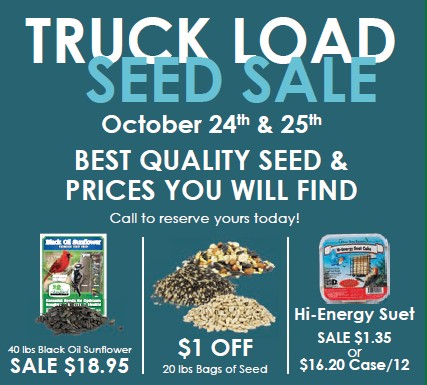 Our Annual Truckload Seed Sale will be held October 24 & 25.